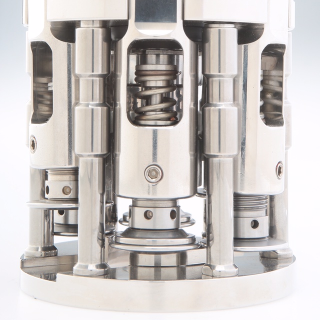 Testa capsulatrice M6 a sei bracci a rulli indipendenti è costruita completamente in acciaio inossidabile, con dispositivo di sicurezza No-Cap-No-Roll per la chiusura di capsule in metallo/alluminio speciali, quelli con filettatura a doppio principio o bordatura doppio sigillo da applicare su bottiglie con imboccatura fuori standard.