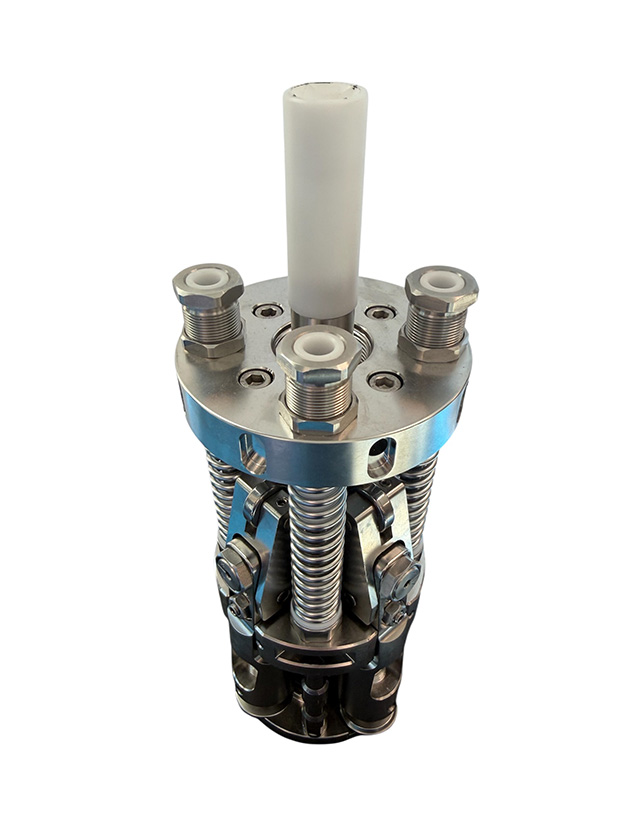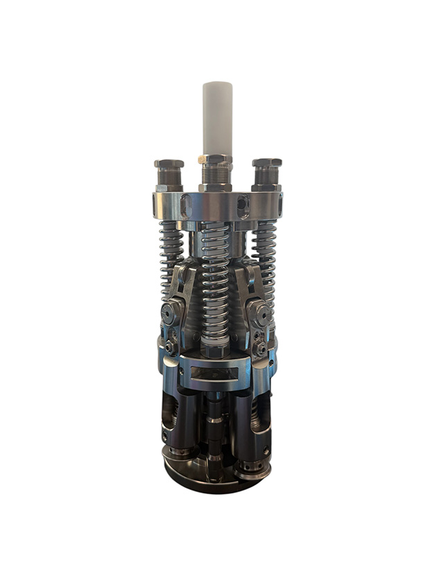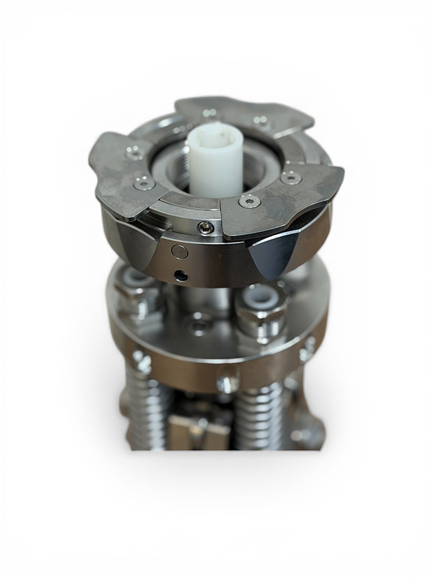 TME20 è una testa a 4 bracci con 4 molle esterne indipendenti, indicata per l’utilizzo su linee automatiche rotative multi-testa, in quanto le molle esterne assicurano un carico assiale meglio distribuito.
