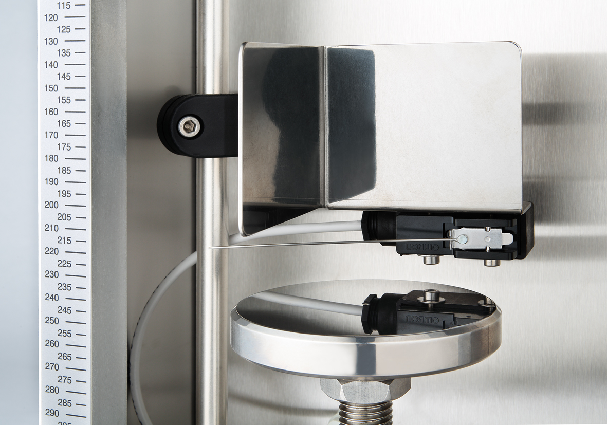 In questa variante della macchina, l’azionamento avviene grazie alla pressione dei due tasti in contemporanea, ma può essere aggiunto un micro-switch di sicurezza sul piattello della macchina per la verifica della presenza della bottiglia. In assenza di prodotto, la macchina non aziona il movimento della testa.